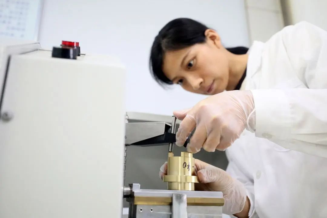 7月7日,河北省隆堯縣遠大閥門集團檢測中心,檢測人員利用光譜儀對產品材料進行化學成分檢測。