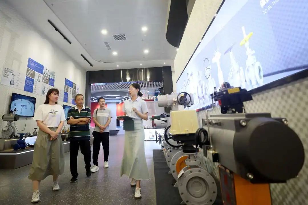 7月7日,河北省隆堯縣一閥門營銷中心展廳,員工為客戶介紹閥門產品。